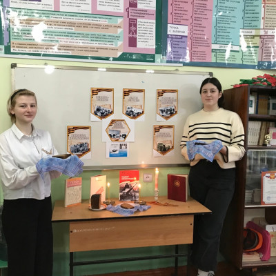 Обучающиеся 9 класса вместе с классным руководителем, Ковтуновой Г.В., приняли участие во Всероссийском уроке памяти " Блокадный хлеб", ребята просмотрели видеоролик, подготовили сообщения о блокадном хлебе, узнали из чего был приготовлен этот хлеб, сколько бумаги, коры добавляли к муке, чтобы испечь такой черный хлеб. Также показали, какой была норма хлеба для рабочего человека - 250 грамм, какой небольшой кусочек хлебушка, такого черного... и на целый день. В память о ленинградцах были зажжены свечи памяти.
