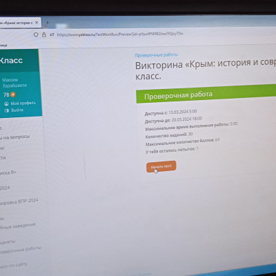 Со Дня воссоединения Крыма сРоссией "ЯКласс" проходит онлайн-викторина для школьников 1-11 классов "Крым: история и современность", с 13 по 20 марта 2024г. на платформе "ЯКласс" . Учащиеся нашей школы 1,7, 8 класса, на уроках географии и дома, приняли участие в викторине. Ждем результатов Викторины!