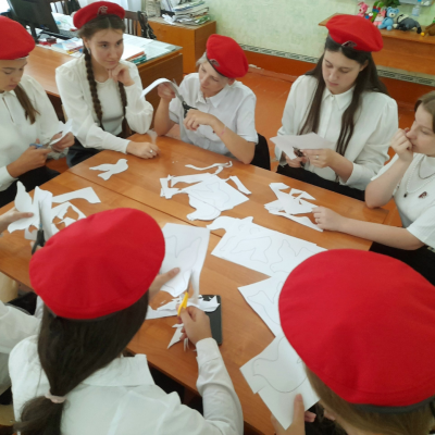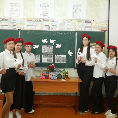 Юнармейцы отряда "Патриоты " приняли участие во Всероссийской акции "Голубь мира ", в знак солидарности в борьбе с терроризмом. Ребята создали из бумаги своего белого голубя в память о всех невинных жертвах.