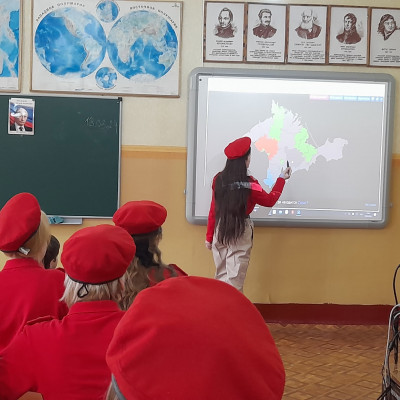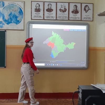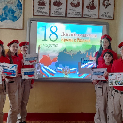 В рамках празднования Дня воссоединения Крыма с Россией Юнармейцы отряда «Патриоты» приняли участие в интерактивном квизе на знание Республики Крым. Задача: найти все муниципальные образования Республики Крым. После интерактивного знакомства с административными единицами Республики ребята успешно выполнили задания квиза. Также узнали о 10 интересных фактах о Крыме и распространили информационные буклеты.