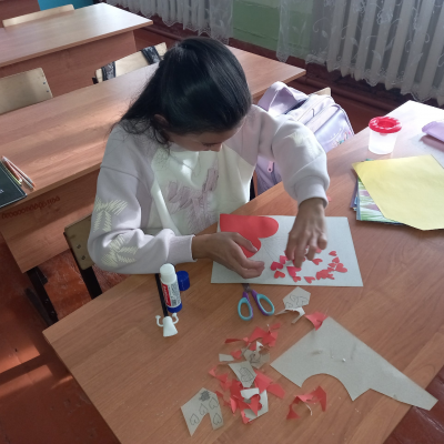 Ребята с большим интересом изготавливали поздравительные открытки, а после старательно написали в них тёплые поздравления и пожелания.