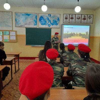 В целях повышения уровня знаний о событиях Сталинградской битвы Юнармейцы отряда «Патриоты» и обучающиеся школы приняли участие в виртуальном туре по музею – заповеднику «Сталинградская битва» на Мамаевом кургане. На Мамаевом Кургане сооружён грандиозный памятник - ансамбль «Героям Сталинградской битвы». Мамаев курган увенчан величественным скульптурным ансамблем. Почти все композиции скульптурного ансамбля как бы выросли из земли и застыли навечно перед братскими могилами героев сражения. Мамаев курган стал символом жизни, бессмертной славы ратного подвига. Мамаев курган является самым большим памятником в мире, посвященному событиям второй мировой войны. Монумент передаёт наиболее полно размах героизма советского народа, а также значения событий Сталинградской битвы. «Лестница на Мамаев Курган».
