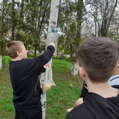 Обучающиеся 6 класса развесили в школьном парке новые кормушки для птиц, почистили старые и всё наполнили свежим, питательным кормом.