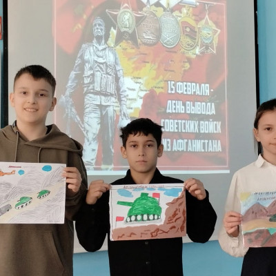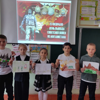 15 февраля День вывода советских войск из Афганистана. День памяти воинов-интернационалистов отмечается в знак памяти о россиянах, проявивших самоотверженность и преданность Родине в период участия в боевых действиях за пределами страны, выполняя взятые СССР и Россией международные обязательства по оказанию военной помощи дружественным странам. Советником директора по воспитанию и взаимодействию с детскими общественными объединениями Кунах И.В. организован конкурс рисунков «Под мирным небом»