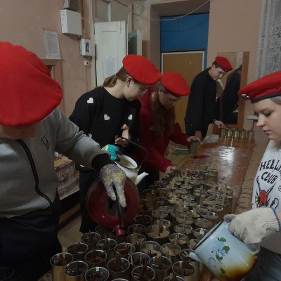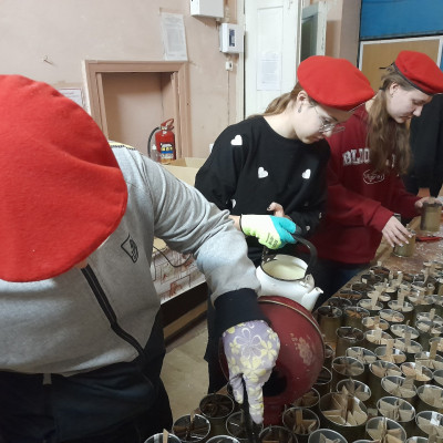 Акция "Окопные свечи". Ни одна патриотическая акция не проходит даром, так как оставляет в сердцах и душах след. 20 декабря юнармейцы отряда "Патриоты", активисты Движения Первых, обучающиеся школы, педагоги и родители изготовили окопные свечи для бойцов на передовой. Окопные свечи для наших мобилизованных очень важны и нужны. Дело это кропотливее, требует немало времени. Ребята осознают, для чего нужны эти свечи, какую помощь они принесут бойцам, поэтому все делают от души. Понимают, что это не какое-то хобби или увлечение, а помощь Родине. Что каждая изготовленная ими блиндажная свеча поможет солдатам на фронте. Свечи будут упакованы и отправлены в пункт сбора для отправки бойцам СВО. Мы надеемся, что свечи, изготовленные руками детей с особенным огоньком доброты, как символ душевной теплоты, согреет каждого солдата!