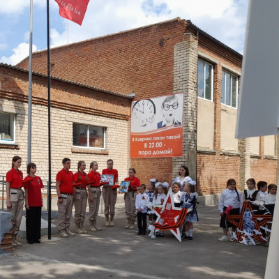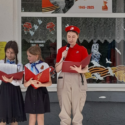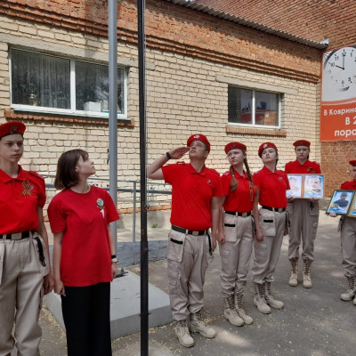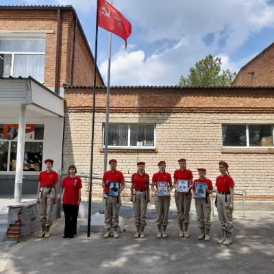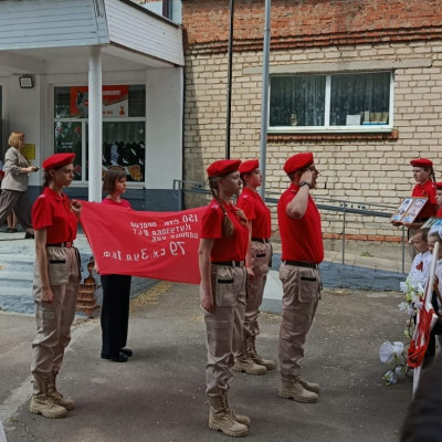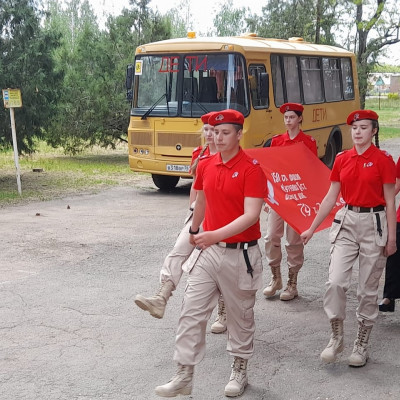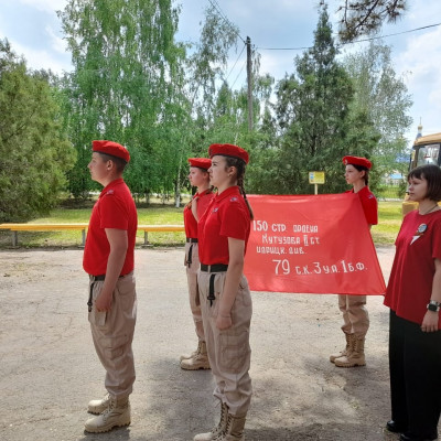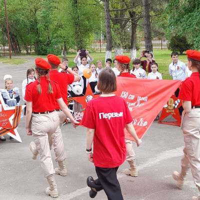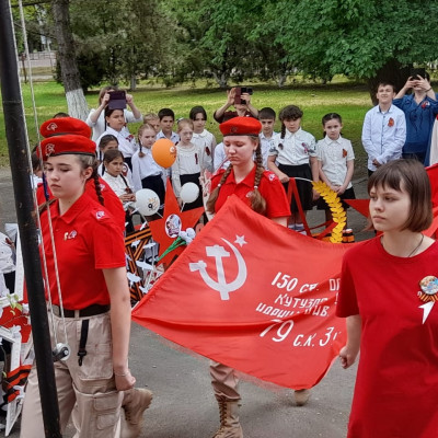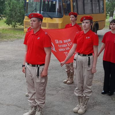 Юнармейцы отряда "Патриоты" и активисты Движения Первых приняли участие в патриотической акции "Победа -одна на всех". На торжественной линейке Памяти в честь 80-летия Великой Победы юнармейцы вынесли копию Знамени Победы — главного символа подвига советского народа и зачитали историческую справку о вкладе народов СССР в общую Победу.