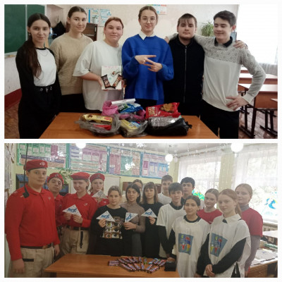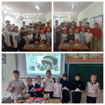 В предверии Новогодних праздников в МБОУ Ковриновская СОШ проведены акции "Сладкая миссия" и "Новогодний подарок солдату". Активисты Движения Первых, Юнармейцы, волонтёры, совместно с другими ребятами нашей школы собрали сладкие батончики, конфеты, печенье, пряники, зефир, шоколад, казинаки, щербет, орехи и многое другое угощение для наших бойцов, находящихся на СВО, которые Новогодние праздники проведут именно там, вдали от дома, семьи. Ребята написали письма, сделали поздравительные открытки. Всё это переданно в пункт приёма гуманитарной помощи и уже скоро отправится в путь к нашим героям.
