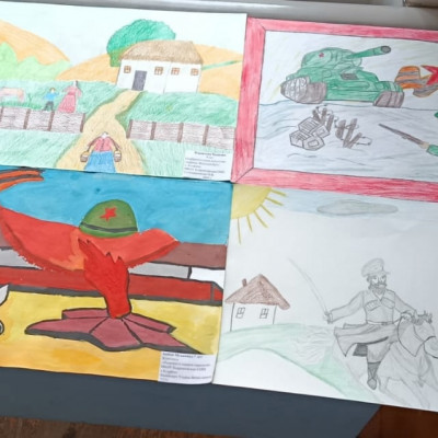 На фестивале детского творчества "Надежда" от школы представлены рисунки, поделки в разной технике и номинациях на тему Великой Отечественной войны. Свои работы представили учащиеся с 1-10 класс:
