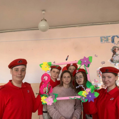 Юнармейцы МБОУ Ковриновская СОШ смастерили фоторамку к 8 Марта своими руками и пригласили девочек, педагогов и работников школы сделать памятные фото, поздравляя всех с праздником и даря комплименты!