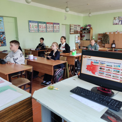 Классный руководитель рассказала ребятам о важных моментах нашей истории, объяснила что такое День Победы,почему мы так свято к нему относимся, почему это радостный праздник со слезами на глазах, почему нам нельзя его забывать. Ребята разгадывали загадки о военной технике, играли в игру "Угадай мелодию", угадывали песни военных лет, просмотрели презентацию о городах Героях, "Знать чтобы чтить и помнить". В завершении урока ребята ребята почтили Память Героям минутой молчания.