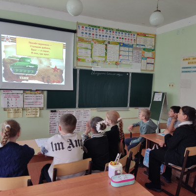 В преддверии 80- летия Великой Победы, в 3-ем классе был проведён классный час "Детям о Великой Отечественной войне."
