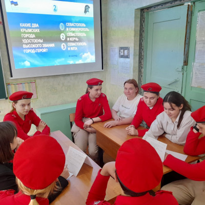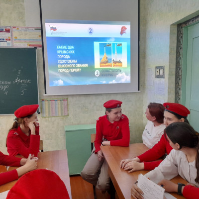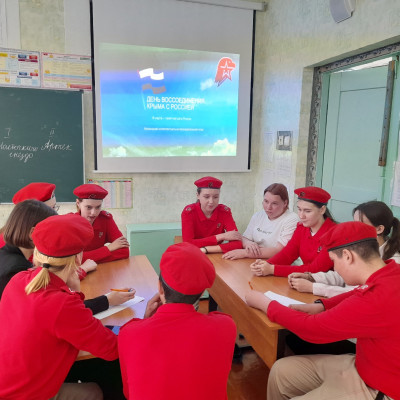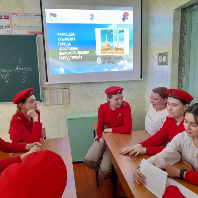 Ко Дню воссоединения Крыма с Россией юнармейцы и обучающиеся МБОУ Ковриновская СОШ приняли участие в командной интеллектуально-познавательной игре «День воссоединения Крыма с Россией". Игра проходила в формате викторины.
