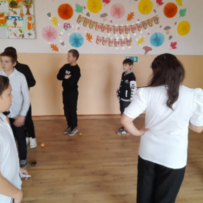 Осень - особенная пора года. Эта торжественная особенность пронизывает осеннюю природу и погоду, заставляет человека проникнуться осенним настроением. А детские осенние развлечения - это море улыбок и веселья. 25 октября в нашей школе в 5-7 классах прошла конкурсно-игровая программа "Осень полна красок и чудес". Ребята поучаствовали в музыкальном конкурсе "Ловкий овощ", эстафете "Перейди лужи", конкурсе "Отгадай цвет осени", "Накорми яблочком", "Ловкий шарик", "Осенний волейбол из листьев". В конце ребята потанцевали под свои любимые, весёлые песни.