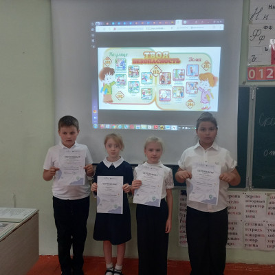 В рамках недели безопасности в 3 классе были проведены мероприятия, направленные на профилактику и предупреждение детского дорожнотранспортного травматизма, возникновения пожаров и других чрезвычайных ситуаций. Классным руководителем была проведена беседа по правилам безопасного поведения по пути следования в школу и домой, электробезопасности, пожаробезопасности и правилами поведения в общественных местах при обнаружении подозрительных предметов, транспорте, возле водоёмов. В завершении мероприятия ребята закрепили полученные знания прохождением теста на образовательной платформе "Просвещение" "Всероссийской урок безопасности." Тестирование охватывало наиболее значимые направления безопасности: Информационная безопасность, противодействие терроризму, правила дорожного движения и многое другое. В завершении тестирования ребята получили сертификаты.
