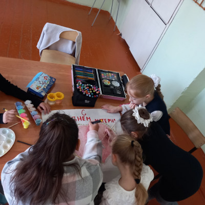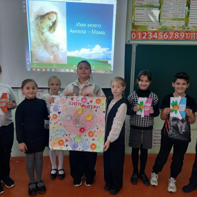 Ребята с большим интересом изготавливали поздравительные открытки, а после старательно написали в них тёплые и искренние поздравления. Также ребята приняли участие во Всероссийской викторине "Моя любимая мама", нарисовали стенгазету.