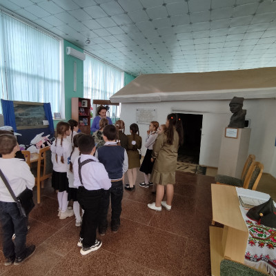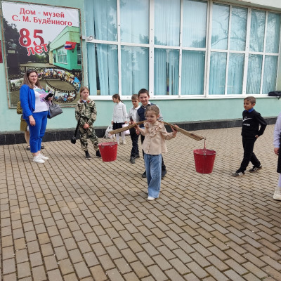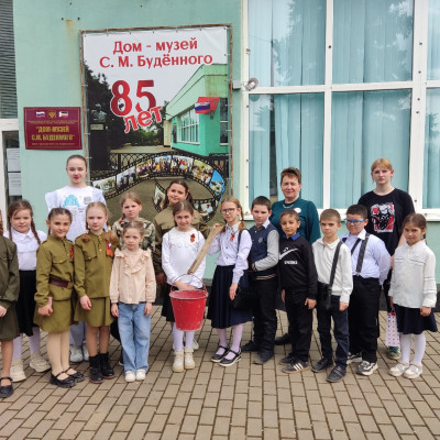 В рамках патриотического воспитания, в Год Защитника Отечества обучающиеся МБОУ Ковриновской СОШ посетили Дом-музей С.М.Буденного в ст.Будённовской. Дом-музей посвящён герою Гражданской войны, маршалу и трижды герою Советского Союза Семёну Михайловичу Будённому. Музей был создан 10 января 1939 года. Он представляет собой землянку, с 1971 года покрытую большим стеклянным павильоном. В ней находятся все предметы домашнего обихода, принадлежащие семье Буденных. В стеклянном павильоне находятся экспозиции по истории образования Первой Конной армии. Во дворе установлен памятник С. М. Будённому работы ростовского скульптора Н. В. Аведикова..Ребята с интересом слушали экскурсовода, рассматривали экспонаты. Попробовали пронести коромысло, но с пустыми вёдрами. Оказалось это не так просто.