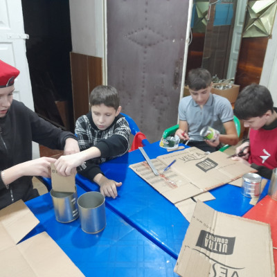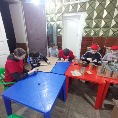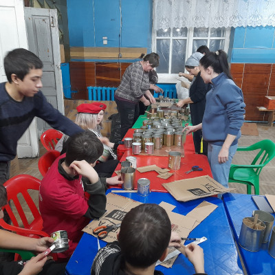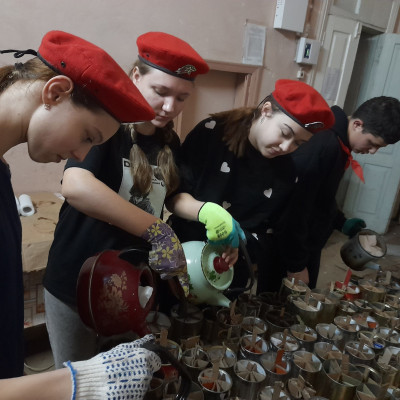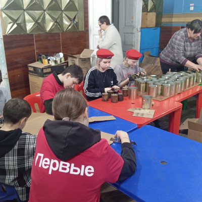 31 января юнармейцы отряда "Патриоты", обучающиеся школы, активисты Движения Первых, работники Дома Культуры, педагоги, родители, жители Ковринского поселения приняли участие в изготовлении окопных свечей. Каждый выполняет свою операцию. Кто-то нарезает картон по размеру, кто-то помещает его внутрь жестяной банки, кто-то нарезает парафин, приобретенный жителями Ковринского поселения, растапливает его и заливает в подготовленные банки.
