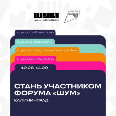 Если тебе от 14 до 17 лет и ты хочешь прокачать свои навыки и научиться создавать крутой контент, — то второй образовательный заезд форума «ШУМ» точно для тебя. Смена «ШУМ. Эксперименты в медиа» пройдёт с 22 по 27 августа в Калининграде при поддержке