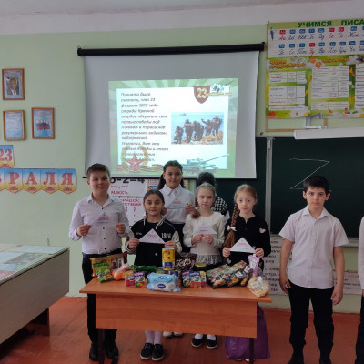 Учащиеся совместно с родителями приняли участие в акции по сбору гуманитарной помощи для участников СВО. Ребята написали письма. В своих письмах военнослужащим, ребята написали слова поддержки и благодарности за нелёгкую военную службу, героизм и мужество в защите нашей Родины.