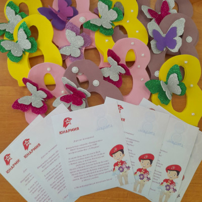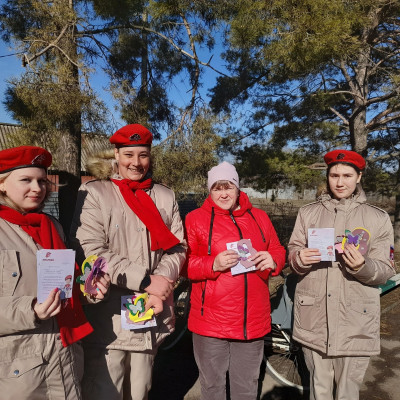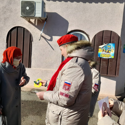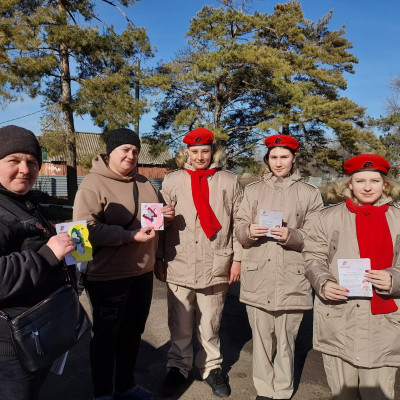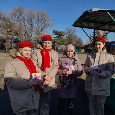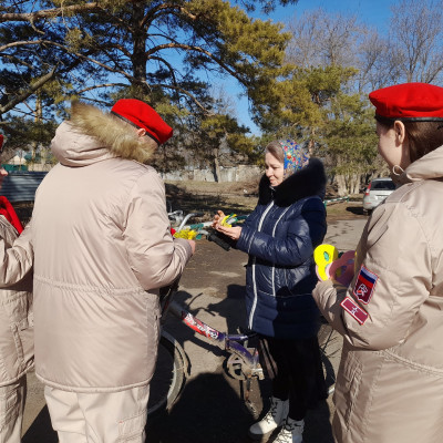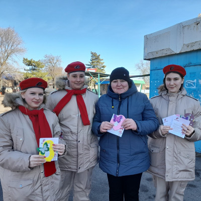 В преддверии праздника 8 марта, юнармейцы отправились по улице Ленина, чтобы поздравить проходящих женщин и девушек с первым весенним праздником.
