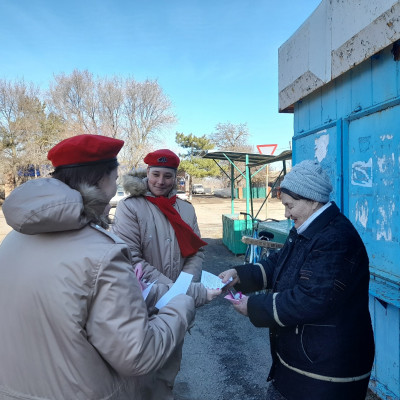 Юнармейцы отряда «Патриоты» приняли участие в акции, приуроченной к Международному женскому дню «Километр красоты».