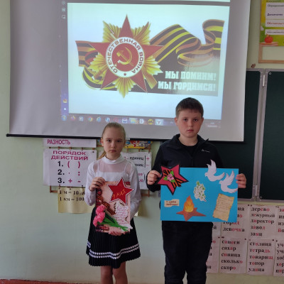 Учащиеся 3-го класса Памбах Ульяна и Агеев Тамерлан приняли участие в VI районном творческом конкурсе "Я помню, Я горжусь!"