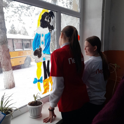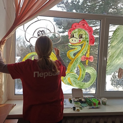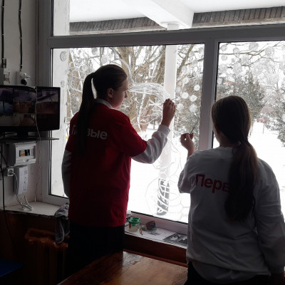 Активисты Движения Первых, Юнармейцы МБОУ Ковриновская СОШ приняли участие во Всероссийской акции "Новогодние окна - 2025".