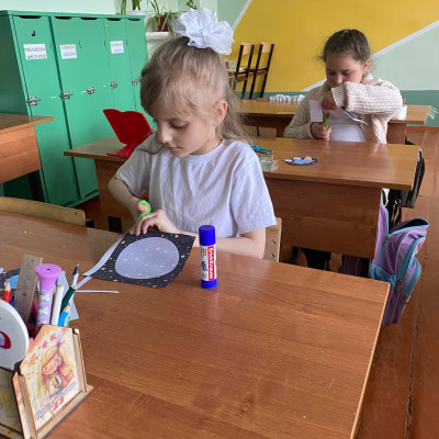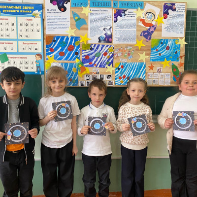 День космонавтики - это особый праздник, когда мы вспоминаем о великих достижениях человечества в освоении неизведанных просторов Вселенной. В преддверии этого праздника в 1-ом классе проведен классный час "Детям о космосе". Дети познакомились с историей возникновения праздника, слушали рассказы о знаменитых собаках Белке и Стрелке, которым удалось раньше человека побывать в космосе, о Юрии Гагарине, о первом полёте человека в космос, о вселенной, планетах. Затем ребята с удовольствием смастерили космическую открытку с подвижным элементом и оформили красочный тематический стенд "Через тернии к звездам" Кл.руководитель: Зосимович У.В.