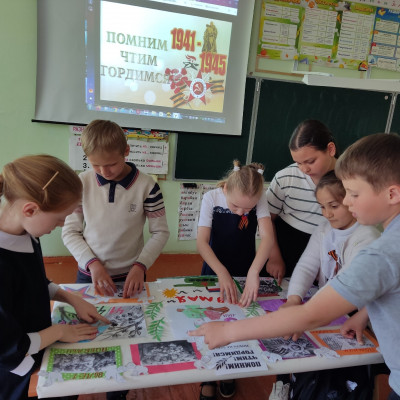 В ходе мероприятия классным руководителем была проведена беседа, также был просмотрен фильм о Великой Отечественной войне. В завершении мероприятия, ребята оформили школьный стенд.