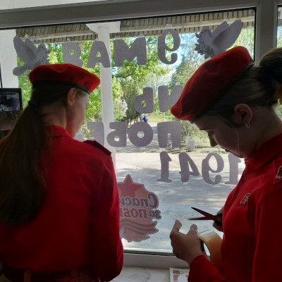 В преддверии празднования Дня Победы юнармейцы отряда "Патриоты" присоединились к Всероссийской акции «Окна Победы», приуроченной к празднованию 80-й годовщины Победы в Великой Отечественной войне 1941-1945 годов.