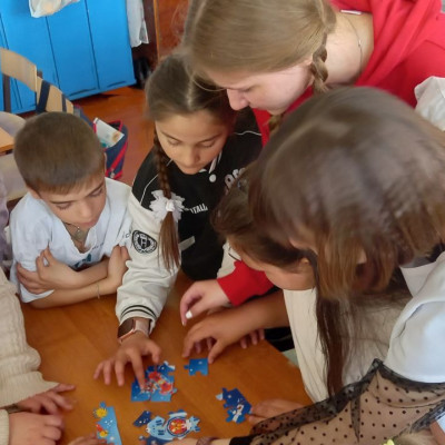 Станция № 3 " Пазл": ученики разбились на команды и собирали космический пазл