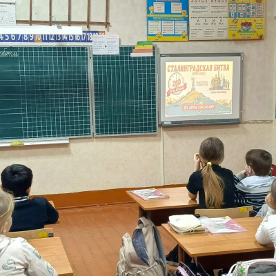 и Европы. Сталинград был назван городом-героем впервые 1 мая 1945 года в Приказе Верховного Главнокомандующего И.В. Сталина. Советником директора по воспитанию и взаимодействию с детскими общественными объединениями Кунах И.В. организован интерактивный урок «Сталинград: 200 дней и мужества» для младших школьников 1-4 классов. Ребятам показано видео "Сталинградская битва". Кунах И.В. представила ученикам фото своего дедушки Борового Ивана Яковлевича - участника Битвы за Сталинград. Ребята посетили школьный музей, где представлена мини- экспозиция «Предметы военного времени»: письма-треугольники, каски, фляжки, гильзы, винтовка времён войны, часть противотанкового орудия и др.