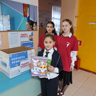 Активисты Первых совместно с учащимися МБОУ Ковриноской СОШ и их родителями, а так же учетелями собрали «Коробку храбрости».