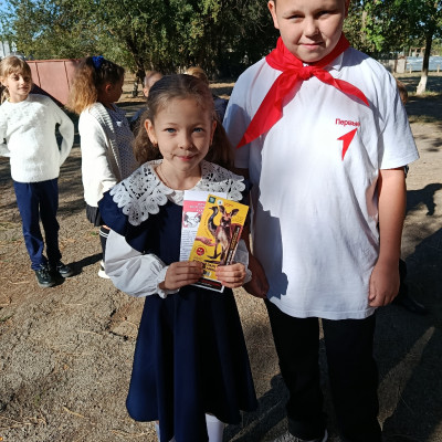 В МБОУ Ковриновская СОШ Активистами Движения Первых проведена акция "Первоклассник" с вручением самым маленьким ученикам нашей школы подарочных билетов на посещение популярного Южного парка птиц "Малинки".