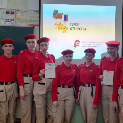 В День Героев Отечества юнармейцы отряда "Патриоты" приняли участие в интеллектуально-познавательной игре "Герои Отечества", чтобы проверить свои знания о подвиге и мужестве тех, кто защищал нашу страну. Игра состояла из таких тем, как воинские звания, рода войск, великие полководцы, ордена, а вопросы включали в себя музыкальные фрагменты и отрывки из фильмов.