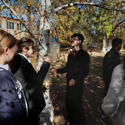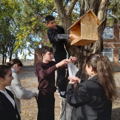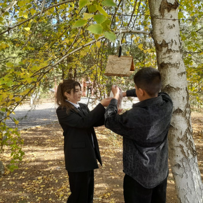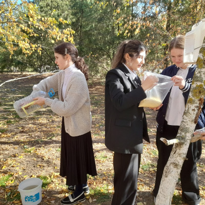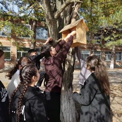 Обучающиеся 7 класса почистили кормушки в школьном дворе от мусора и остатков старого корма и наполнили их свежим кормом.