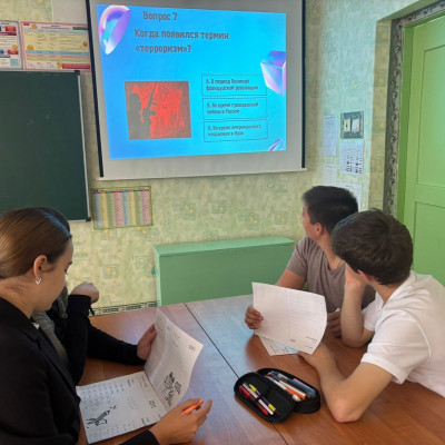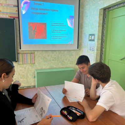 В рамках месячника "Территория беZопасности" в 10 классе была проведена "Тематическая викторина (квиз)" по антитеррористической безопасности. Это командное интеллектуально-познавательное соревнование, участники разделились на 2 команды и отвечали последовательно на поставленные вопросы в течение нескольких раундов - "Разминка", "Камера, мотор!", "О чем думает автор?", "Угадай фильм", "Внимание, вопрос". Задания викторины помогли применить и закрепить полученные на уроках ОБЗР знания. #ТерриториябеZопасности