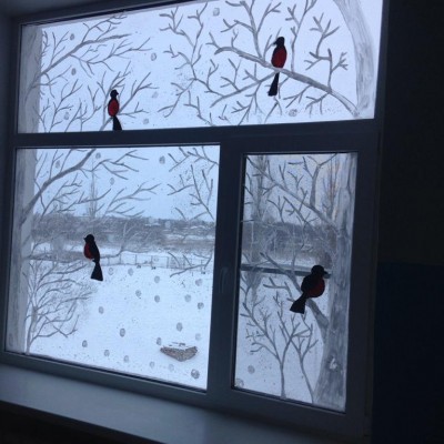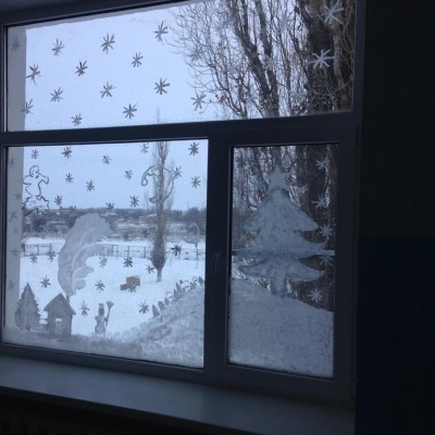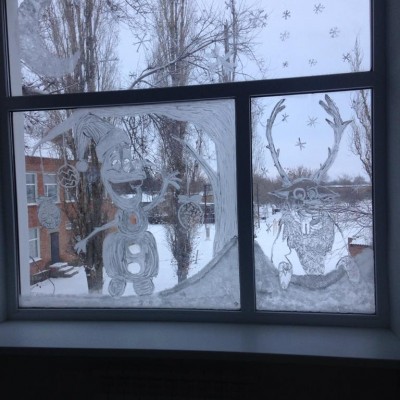 Украшать окна с детьми всегда радостно. Это не только сближает ребят и учителей, но и дарит минуты искренней радости. Развитие в детях настоящего вкуса, пробудить в них талант к художеству. К тому же, стоит мальчишке или девчонке один раз объяснить, как нарисовать новогодний рисунок, в следующий раз ( как это и происходит в школе) он удивит вас своей фантазией и изобретательностью. И тогда рисунки на окнах к Новому году порадуют всех! В нашей школе все готовились к встрече зимы. Вот, что из этого получилось...