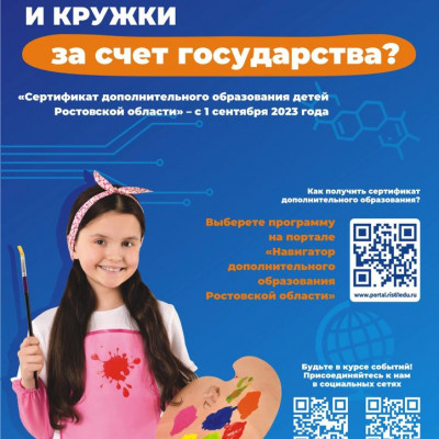 Получить сертификат дополнительного образования можно через информационный портал «Навигатор дополнительного образования Ростовской области» (далее – Навигатор), в котором содержится максимально полная информация о кружках, секциях и организациях дополнительного образования, сведения о дополнительных образовательных программах Ростовской области. Навигатор синхронизирован с федеральной государственной информационной системой «Единый портал государственных и муниципальных услуг (функций)» (Госуслуги), что позволит вам (законным представителям) подать в электронном виде заявление о записи ребенка на дополнительную общеобразовательную программу. Кроме того, сертификат можно получить через обращение в Муниципальный опорный центр Пролетарского района, который находится по адресу: Ростовская область, Пролетарский район, г.Пролетарск, ул. Железнодорожная, д.24. График работы: понедельник- суббота с 9.00-17.00 ч.