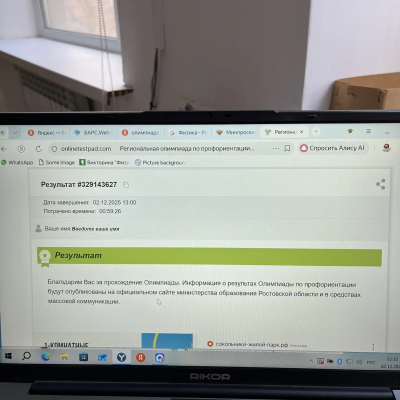 2 декабря 2025 года обучающаяся 11 класса, Непокрытая Валерия , победительница муниципального этапа ,приняла участие в региональном этапе олимпиады по профориентации «Я выбираю будущее». Желаем удачи!